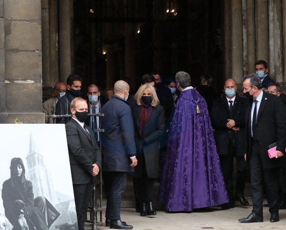 Brigitte Macron i Francois Hollande na pogrzebie Juliette Greco