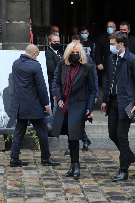 Brigitte Macron i Francois Hollande na pogrzebie Juliette Greco