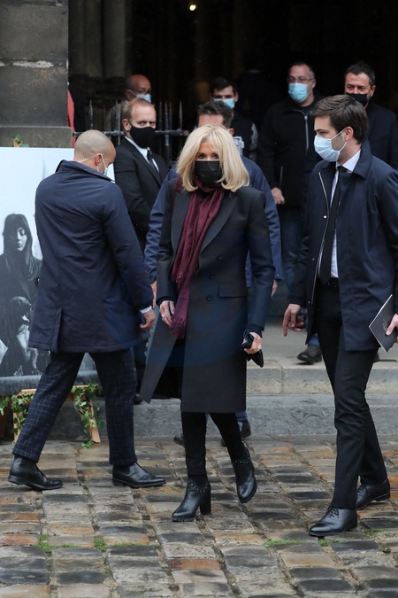 Brigitte Macron i Francois Hollande na pogrzebie Juliette Greco