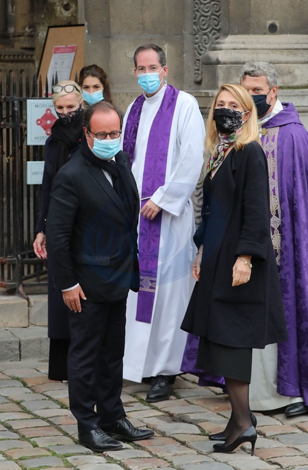 Brigitte Macron i Francois Hollande na pogrzebie Juliette Greco