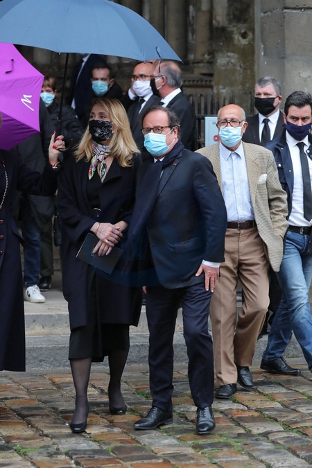 Brigitte Macron i Francois Hollande na pogrzebie Juliette Greco