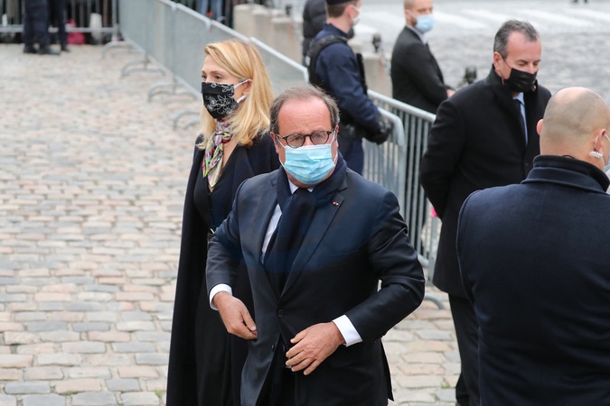 Brigitte Macron i Francois Hollande na pogrzebie Juliette Greco