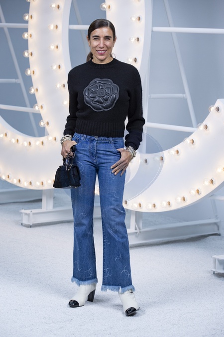 Znni pozuja do zdjec na pokazie Chanel