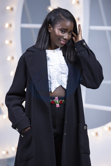 Znni pozuja do zdjec na pokazie Chanel
