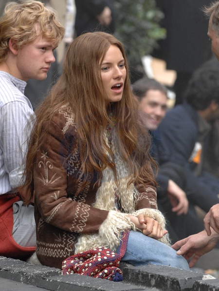 Sienna Miller na planie filmowym "Hippie hippie Shake", Londyn