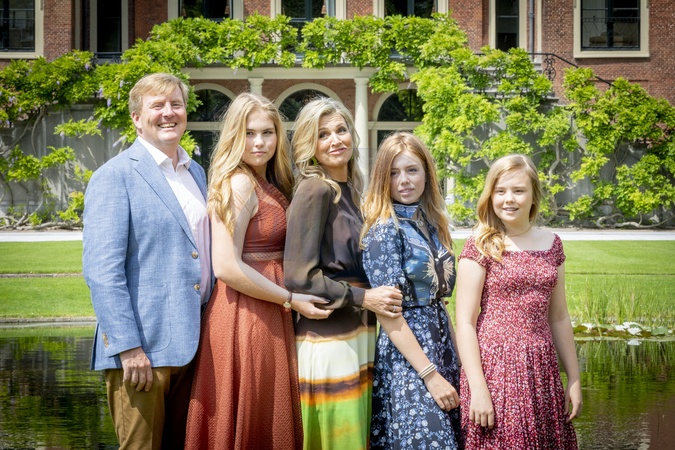 Rodzinna sesja - Willem Alexander z zona i corkami pozuje w ogrodzie palacu Huis ten Bosch