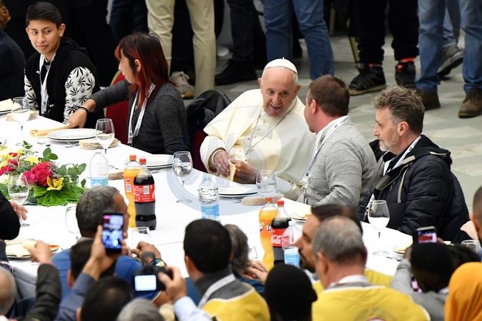 Papiez Franciszek je lunch z ludzmi w Hali Nervi z okazji Swiatowego Dnia Ubogich