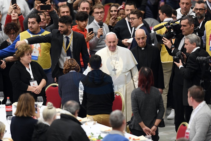 Papiez Franciszek je lunch z ludzmi w Hali Nervi z okazji Swiatowego Dnia Ubogich