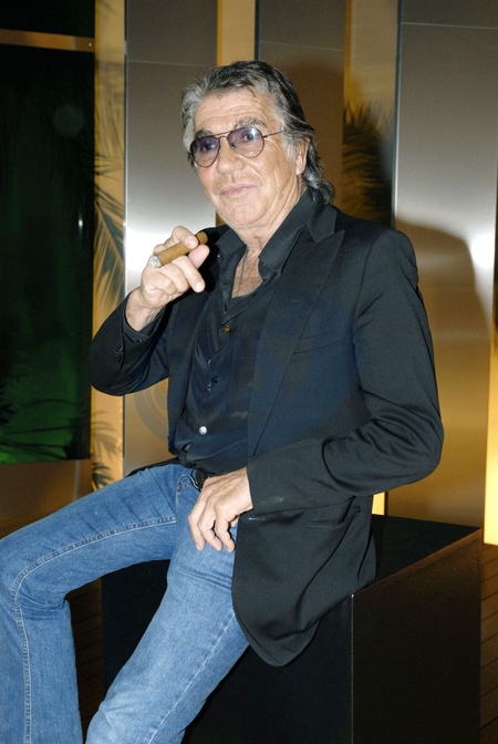 Tara Reid i Roberto Cavalli podczas pokazu mody, Mediolan
