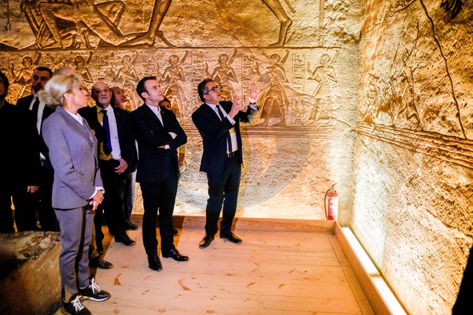 Emmanuel Macron, Brigitte Macron, Khaled El-Enany