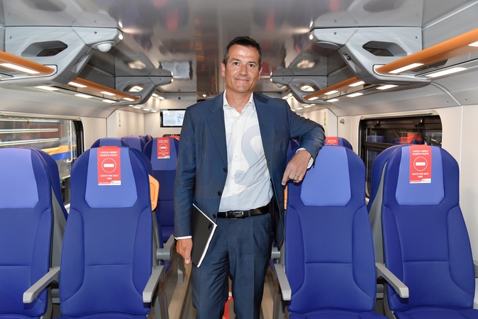 Wnetrze nowego pociagu Rock firmy Trenitalia w Rzymie