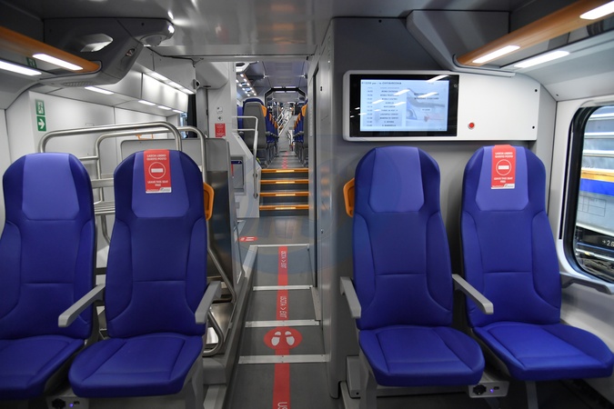 Wnetrze nowego pociagu Rock firmy Trenitalia w Rzymie