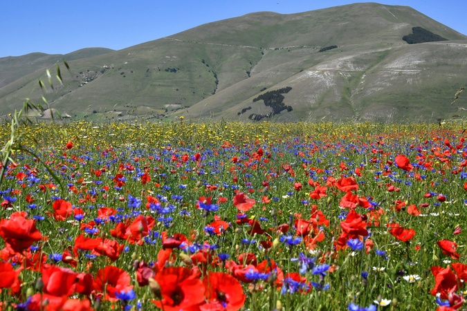 Pola kwitnacej soczewicy, Castelluccio di Norcia (Perugia), Wlochy