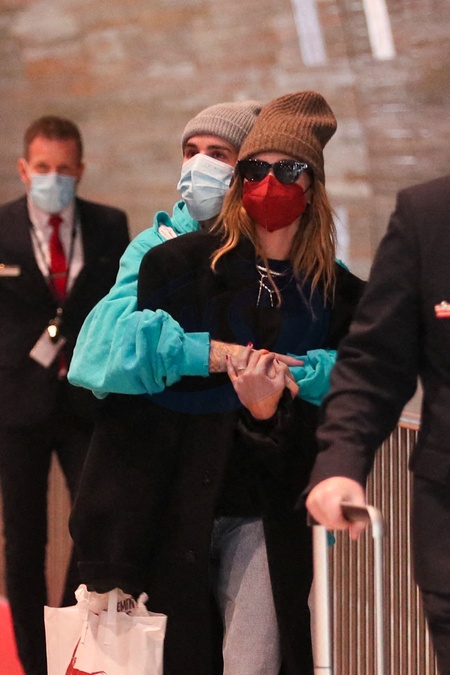 Justin Bieber w dziurawej bluzie na lotnisku - razem z zona Hailey