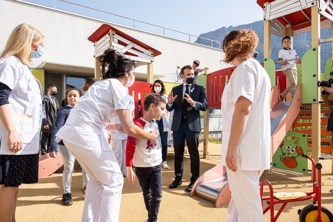 Emmanuel Macron podczas Dnia Swiadomości Autyzmu