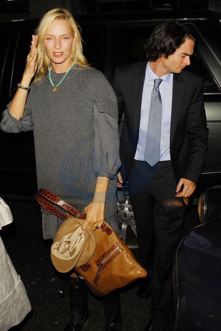 Uma Thurman wychodzi z restauracji i idzie na nastepna impreze, Londynn