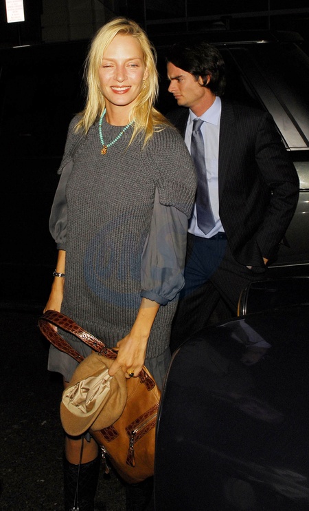 Uma Thurman wychodzi z restauracji i idzie na nastepna impreze, Londynn
