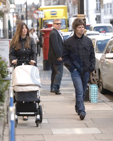 Noel Gallagher i Sara MacDonald spaceruja z dzieckiem, Londyn