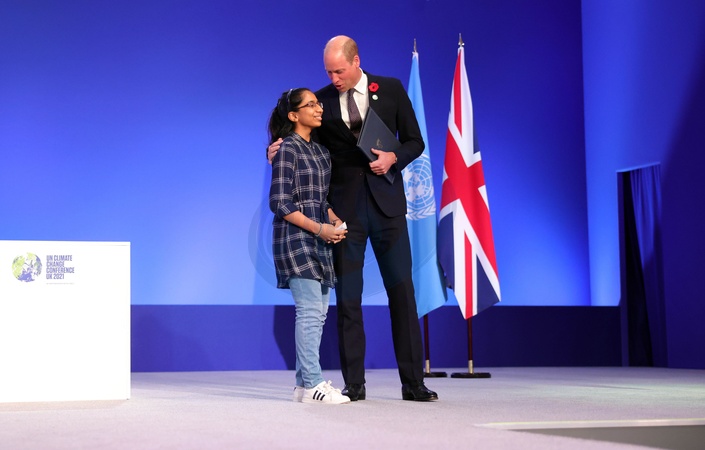 Ksiaze William z 14letnia Vinisha Umashankar, finalistka EarthShot Prize na Cop26
