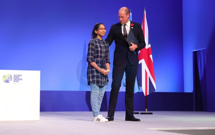 Ksiaze William z 14letnia Vinisha Umashankar, finalistka EarthShot Prize na Cop26