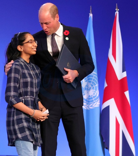 Ksiaze William z 14letnia Vinisha Umashankar, finalistka EarthShot Prize na Cop26