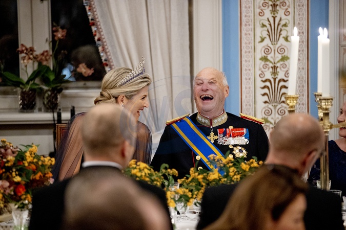 Krol Willem Alexander i krolowa Maxima na uroczystej kolacji w Norwegii