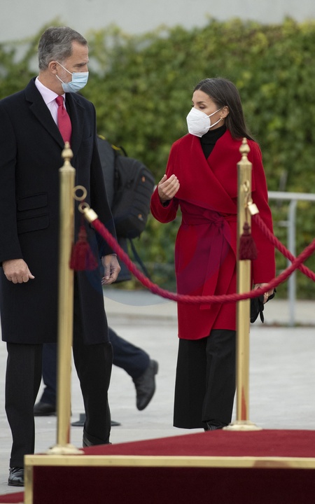 Krolowa Letizia i krol Filip na lotnisku w Madrycie