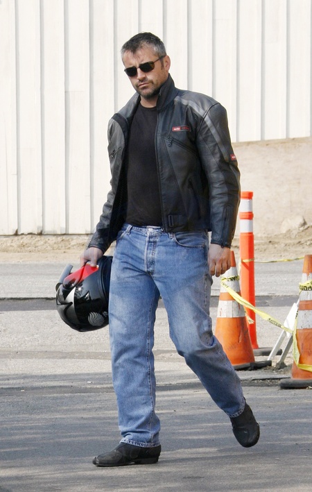 Aktor Matt LeBlanc podczas przejazdzki motorem, Malibu