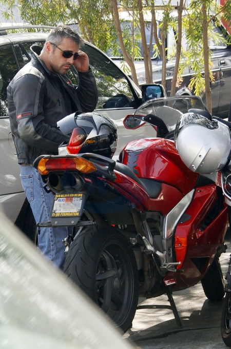 Aktor Matt LeBlanc podczas przejazdzki motorem, Malibu