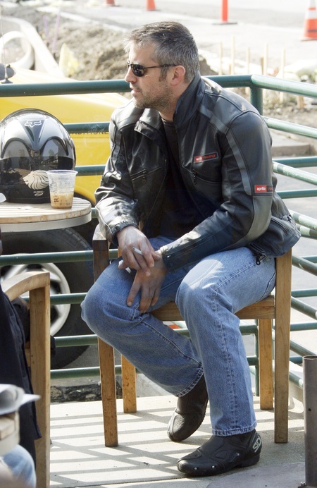 Aktor Matt LeBlanc podczas przejazdzki motorem, Malibu
