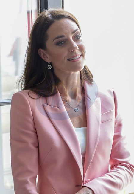 Ksiezna Kate na spotkaniu w bladorozowym garniturze