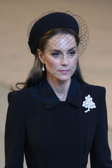 Rodzina krolewska podczas przybycia trumny Krolowej Elzbiety II