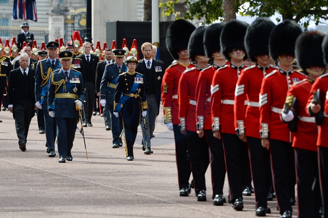 Rodzina krolewska podczas przybycia trumny Krolowej Elzbiety II