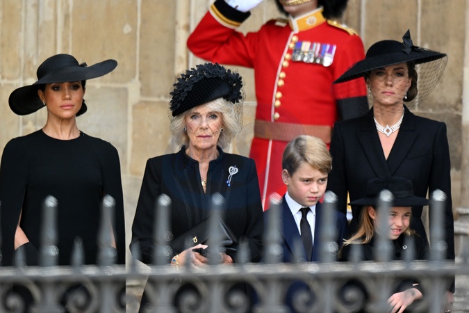 Meghan Markle, krolowa Malzonka Camilla, ksiaze George, ksiezniczka Charlotte, ksiezna Kate (1)