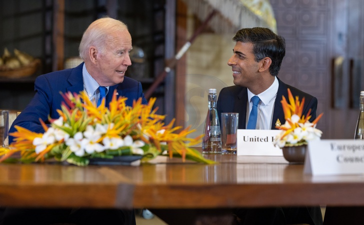 Rishi Sunak i Joe Biden rozmawiaja na G20 na Bali