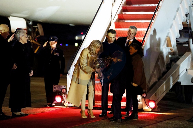 Macronowie na lotnisku w USA