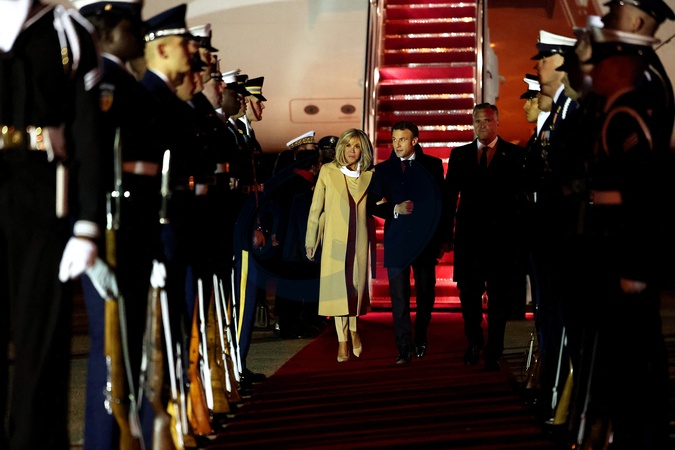 Macronowie na lotnisku w USA