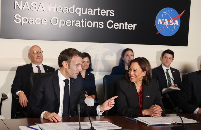 Emmanuel Macron wpatrzony w Kamala Harris - podczas spotkania w NASA