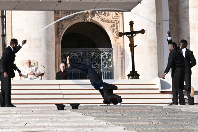 Akrobaci wystepuja przed Papiezem