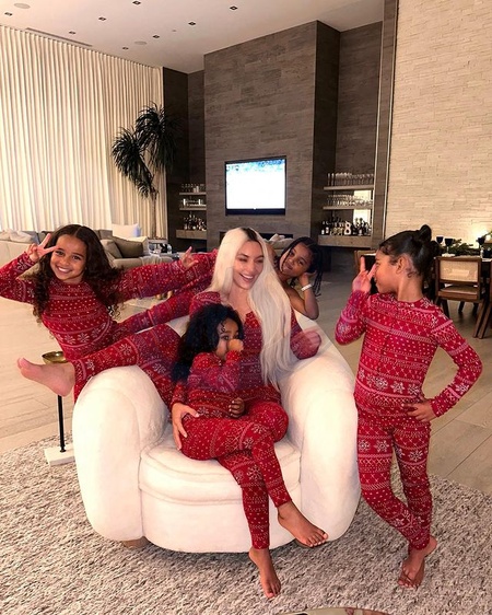 Kim Kardashian z dziecmi w swiatecznych pizamach (social media)