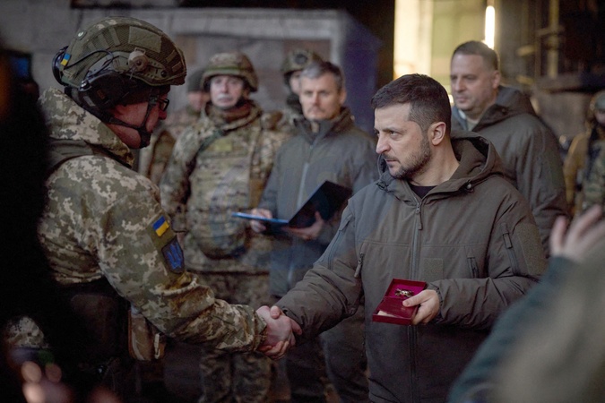 Wołodymyr Zelenski wrecza medale za bohaterstwo