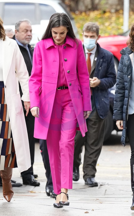 Krolowa Letizia cala na fuksjowo i w za malych butach