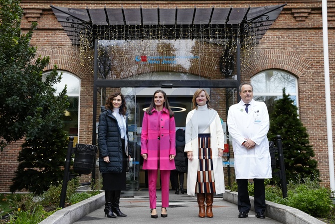 Krolowa Letizia cala na fuksjowo i w za malych butach