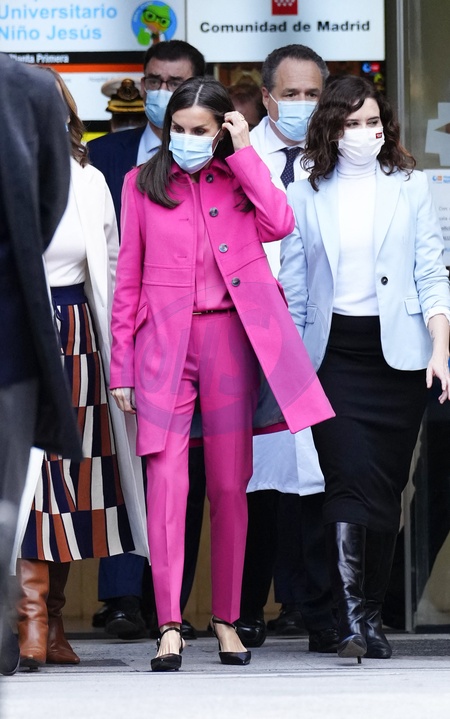 Krolowa Letizia cala na fuksjowo i w za malych butach