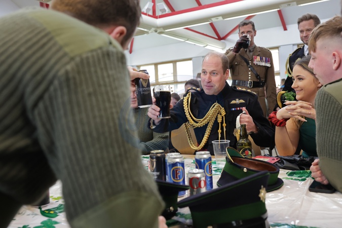Rozbawiony Ksiaze William i ksiezna Kate pija piwo Guiness
