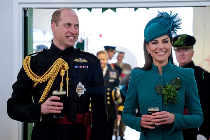 Rozbawiony Ksiaze William i ksiezna Kate pija piwo Guiness
