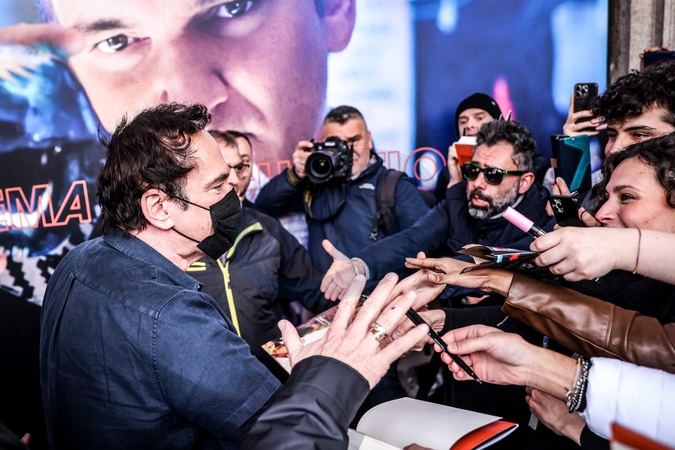 Quentin Tarantino podpisuje ksiazke Cinema Speculation