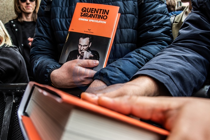 Quentin Tarantino podpisuje ksiazke Cinema Speculation