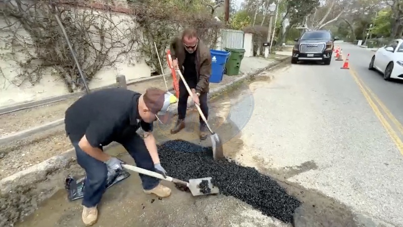 Arnold Schwarzenegger naprawia dziure na swojej ulicy_