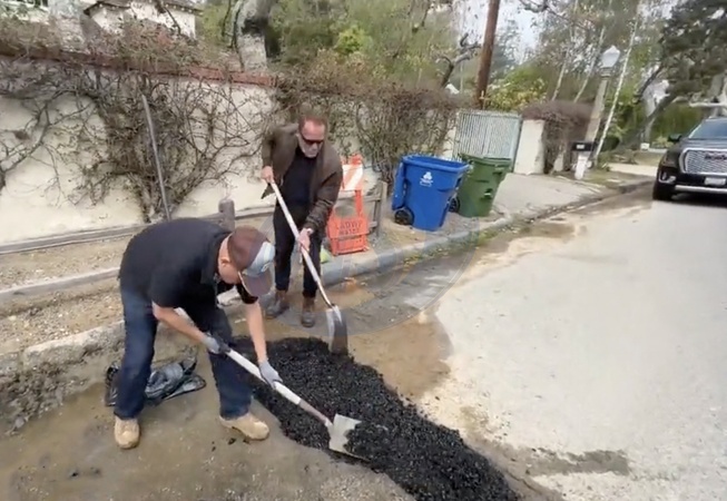 Arnold Schwarzenegger naprawia dziure na swojej ulicy_